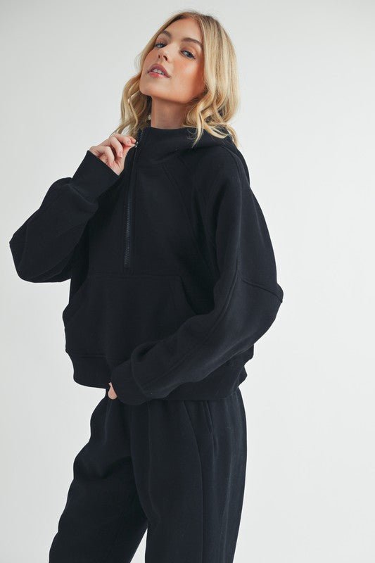 Scuba-Inspired Half Zip Raglan Sleeve Hoodie with Kangaroo Pocket