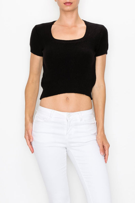 Elegant High-Street Solid Rib Knit Off-Shoulder Top